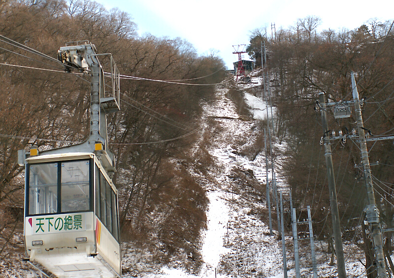 町営駐車場の横には、伊香保ハイランドスケートセンターのある「見晴台」までロープウエイがあるが、駅の改装工事かなにかで運休中だった。残