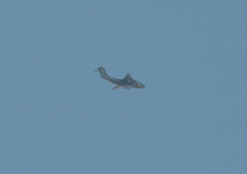 鳥たちの姿を求めてフラフラしていたら、上空からジェット音が。小さな機影だが一目でわかる。C-1輸送機だ!!